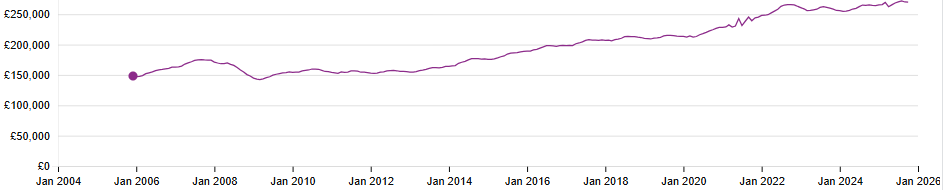 Although an IHT-free threshold of £1m may seem quite generous, the number of people caught in the IHT net has been increasing for several years, due in the main to the rapid increase in property prices. In the 20 years running up to October 2025, which is the latest stats from the Land Registry, the average UK house price has almost doubled to nearly £270,000.