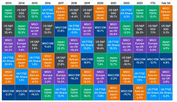 Figure 1. World Equity returns, Source: JP Morgan, 29th February 2024