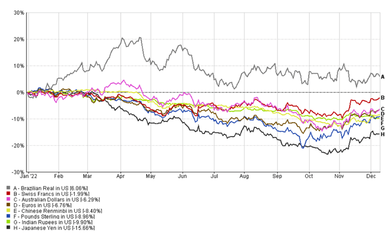 Figure 18. Total Return of Currencies vs USD between January 2022 and December 2022 (Source: FE – December 2022)