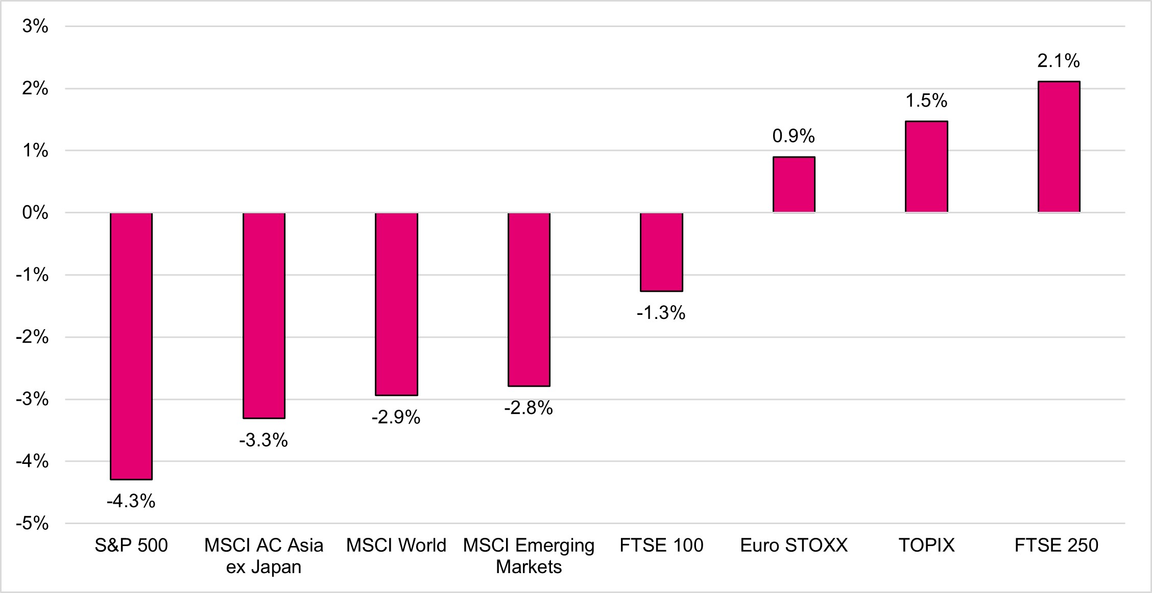Figure 2: April 2025: Regional Equity Returns in sterling (Source: FE Analytics)