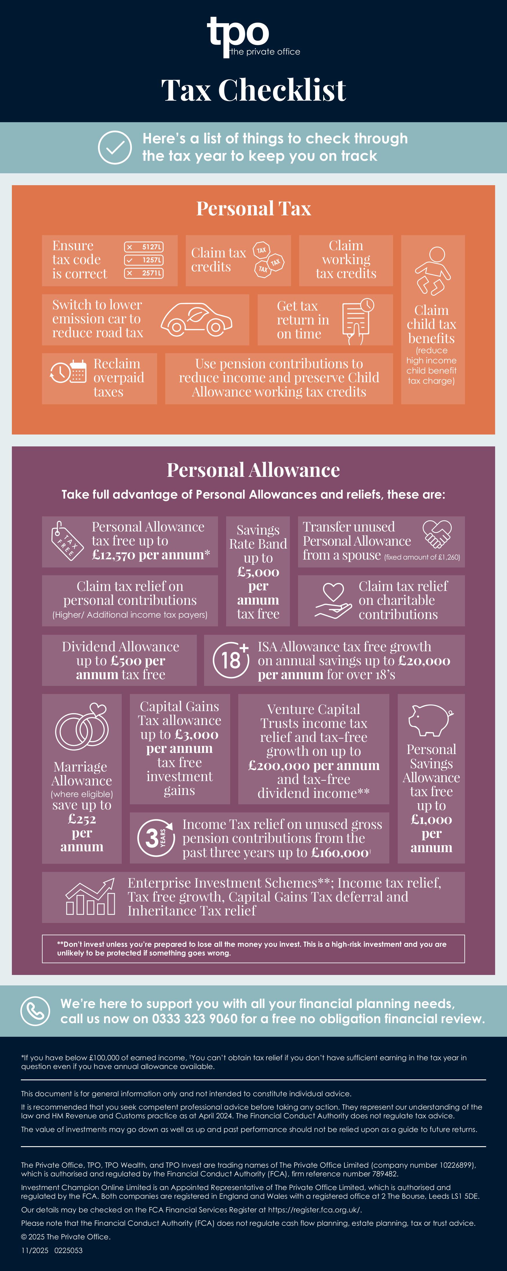 Here we list out some tips on keeping track of important things during the tax year, with suggestions on how to make the most of your personal allowances and tax credits.